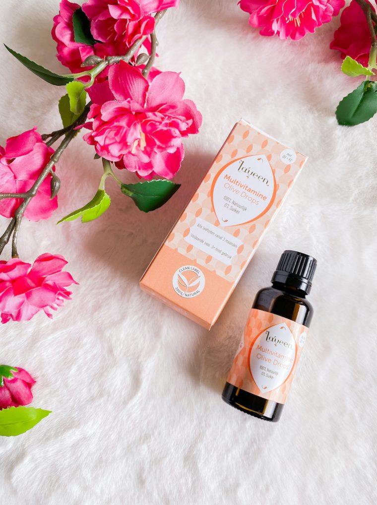 Pure vitamineduppels voor het gehele gezin, met een neutrale smaak. De vitamines zijn op basis van biologische olijfolie en verder niets. Als ik de ingrediënten lijst bekijk zitten er naast vitamine D3 en K2 ook vitamine A en E er in. Vitamine A zorgt voor de normale werking van het immuunsysteem. Vitamine D draagt bij aan de normale groei en ontwikkeling van de botten van kinderen. Draagt bij aan het normale functioneren van het immuunsysteem. Vitamine E helpt de cellen te beschermen tegen oxidatieve schade door luchtvervuiling en levert een bijdrage als anti-oxydant. Vitamine K2 is belangrijk voor de bloedstolling en bij de opname van mineralen/calcium in de botten/het botweefsel. De Laveen Olive Drop met Multivitamine D3 + K2 is t.w.v. €17,99. Te gebruiken bij alle leeftijden vanaf 3 maanden. Voldoende voor 3+ maanden gebruik. Suikervrij en Natuurlijk product.